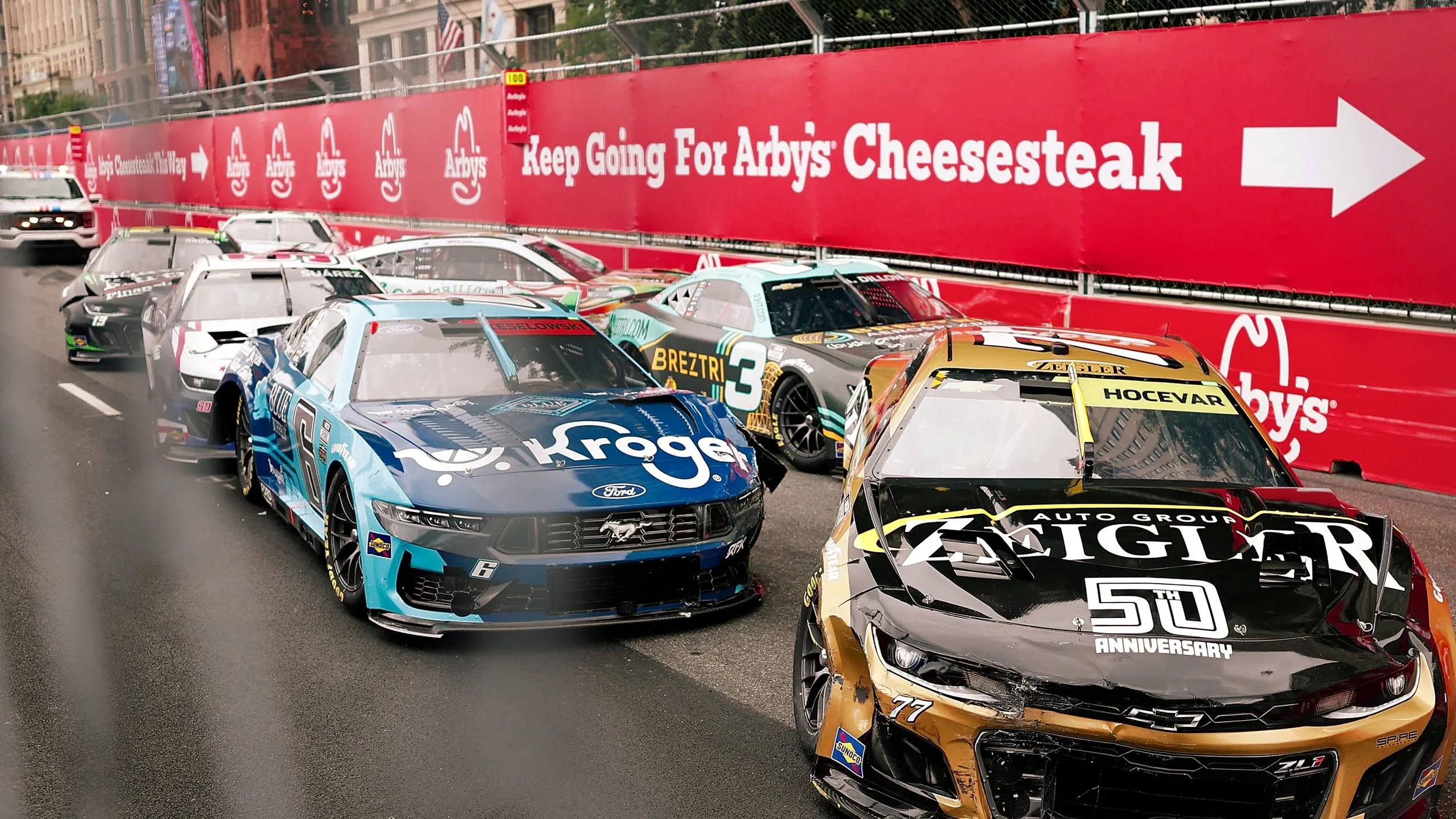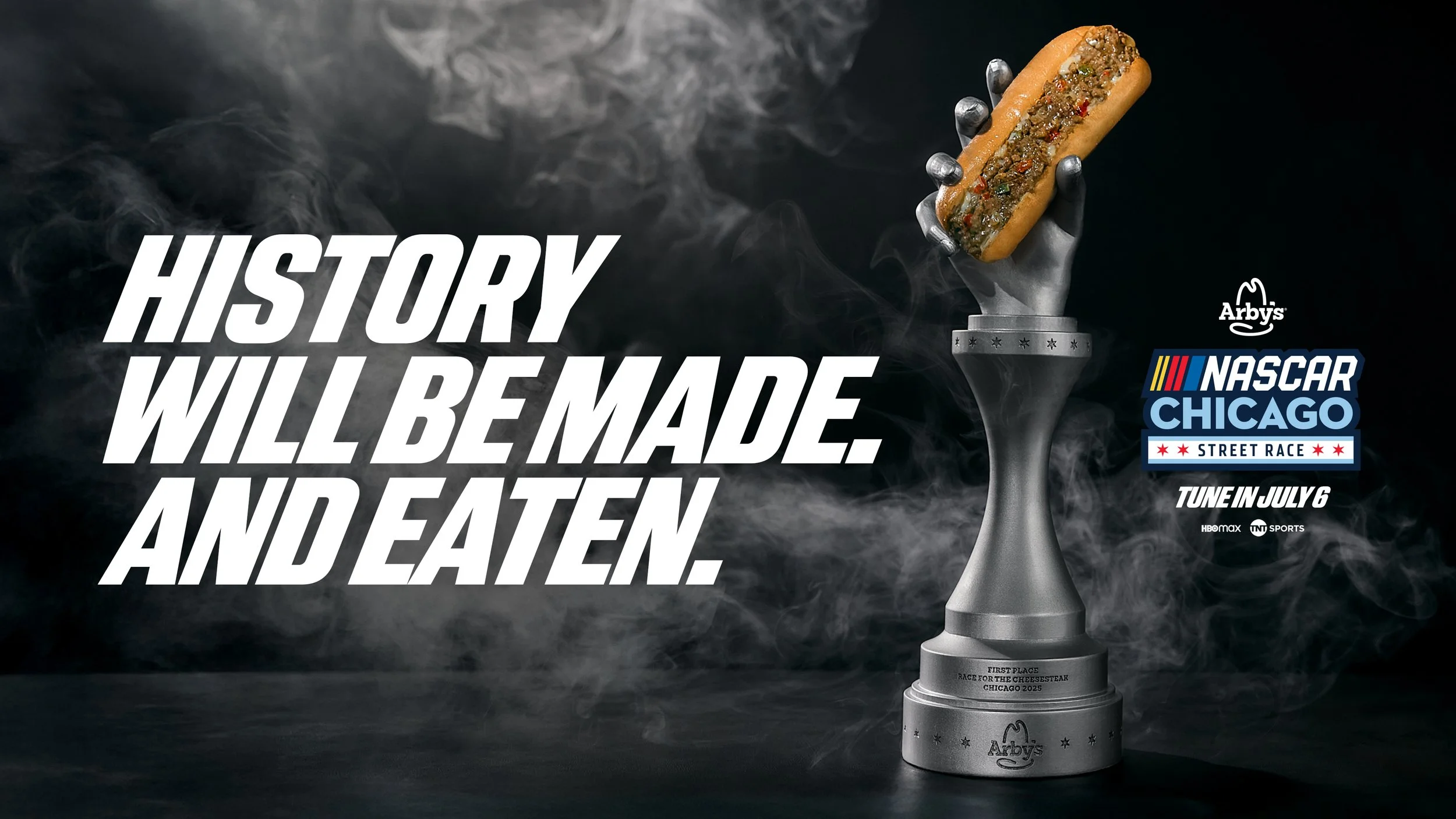 In NASCAR, drivers race really fast for money and fame. But at the 2025 Chicago Street Race, they were racing for Arby’s Cheesesteak.